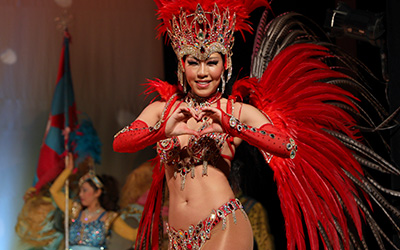 サンバは女性ダンサーだけではなく、男性ダンサーやブラジルの打楽器を演奏する楽器隊など様々なパートがあります。楽しそうだけど、あんな衣装を着る自信がない…そう思っているあなた!!当チームにはワンピース風の衣装も取り揃えています!