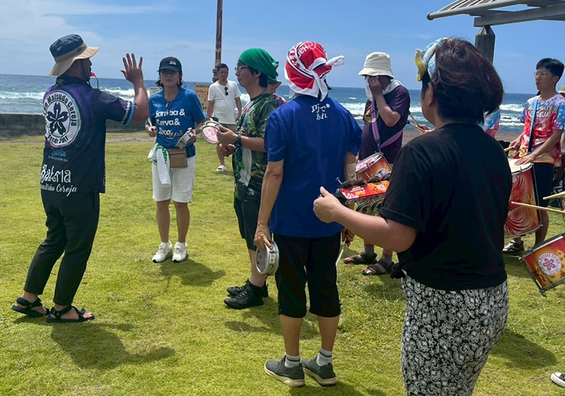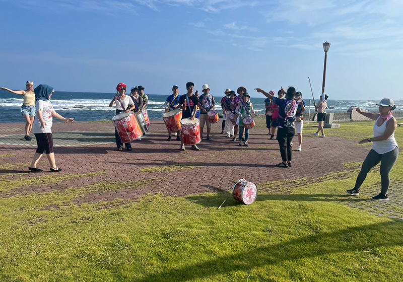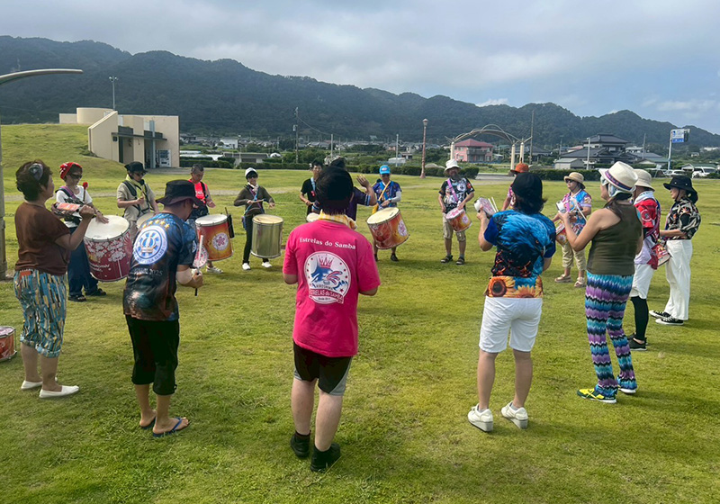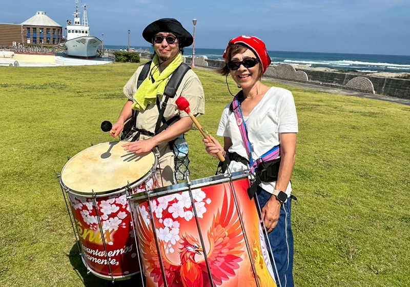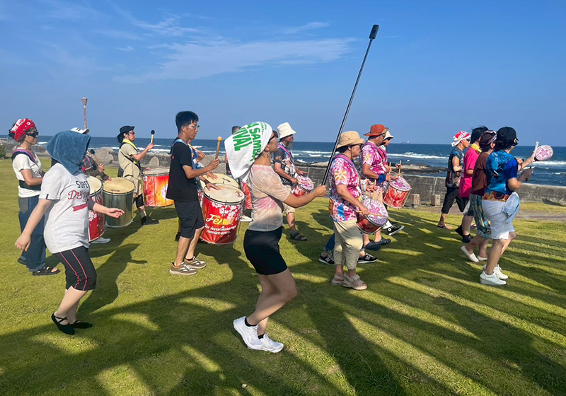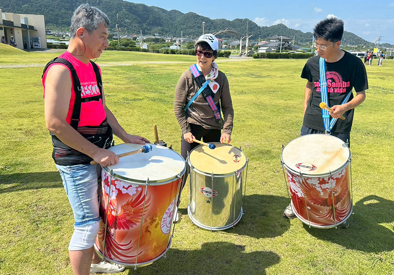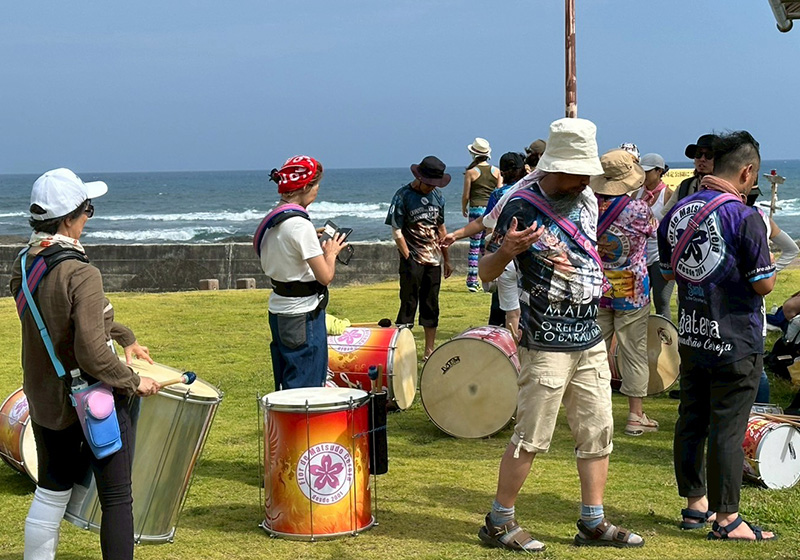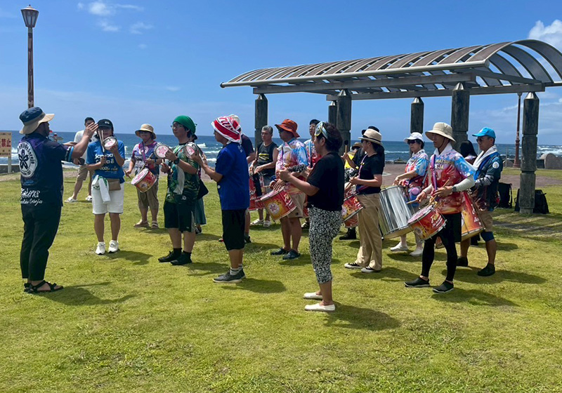 練習場所は、道の駅ちくら・潮風王国に広がる芝生の広場。観光客の方も多く、遠くから何やら眺める人や、リズムに合わせて踊り出す小さなお子さんの姿も。普段のスタジオ練習とは違い、わたしはちょっと見栄も入ってか、自然と練習に力が入りました。