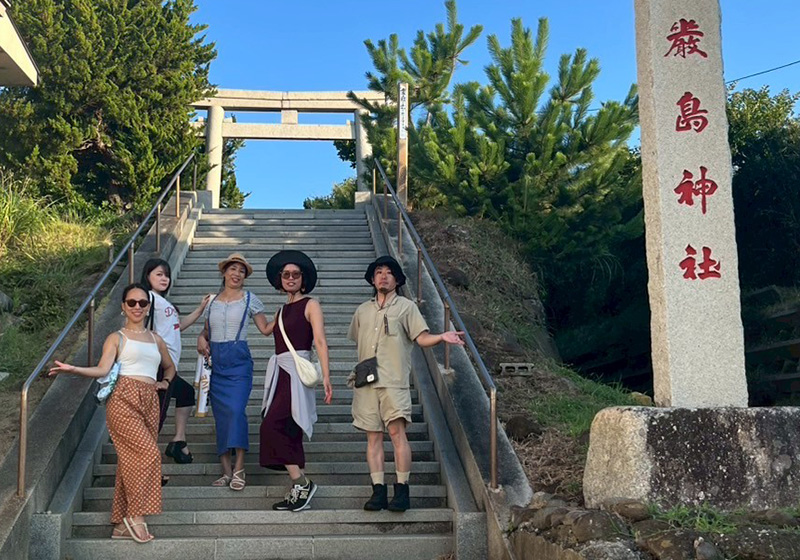 私は、ダンサーで今回の浅草総監督を務めるルイさん・マルさんに誘われ、夕日のゴールデンタイムに野崎灯台へお散歩へ。灯台は閉まっていましたが、隣の神社にある“とある御神体”に全員興味津々…。ややセンシティブな御姿なので、ここでは詳細をさけます。気になる方は各自お調べください!
