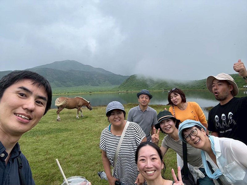 夜は親睦会(馬刺しも地鶏も美味かった〜〜)、翌朝は熊本城の朝散歩からの阿蘇山・草千里・白川水源ツアー。