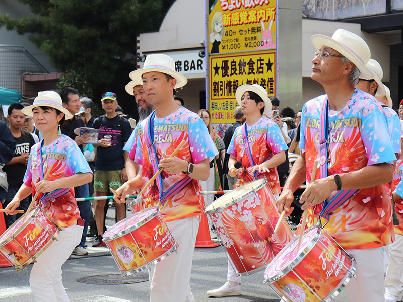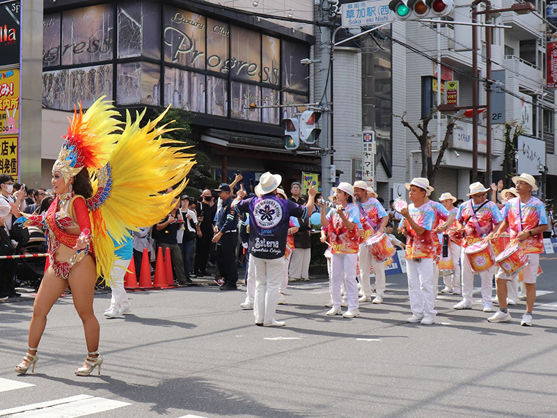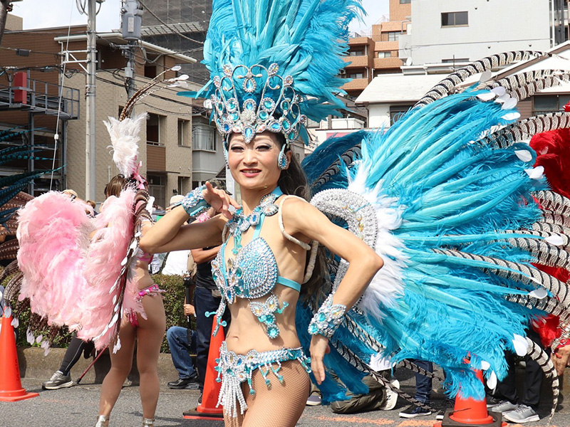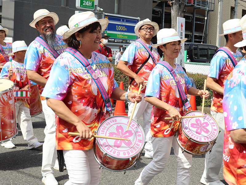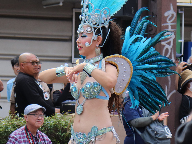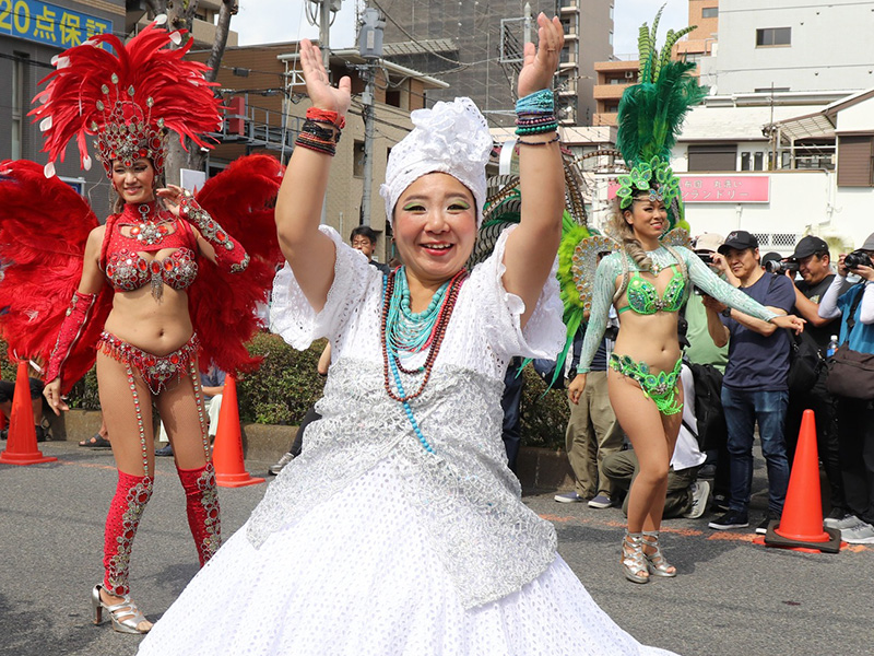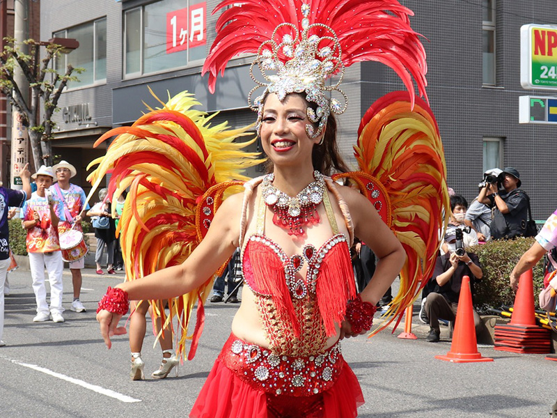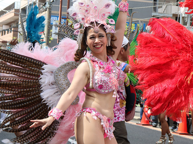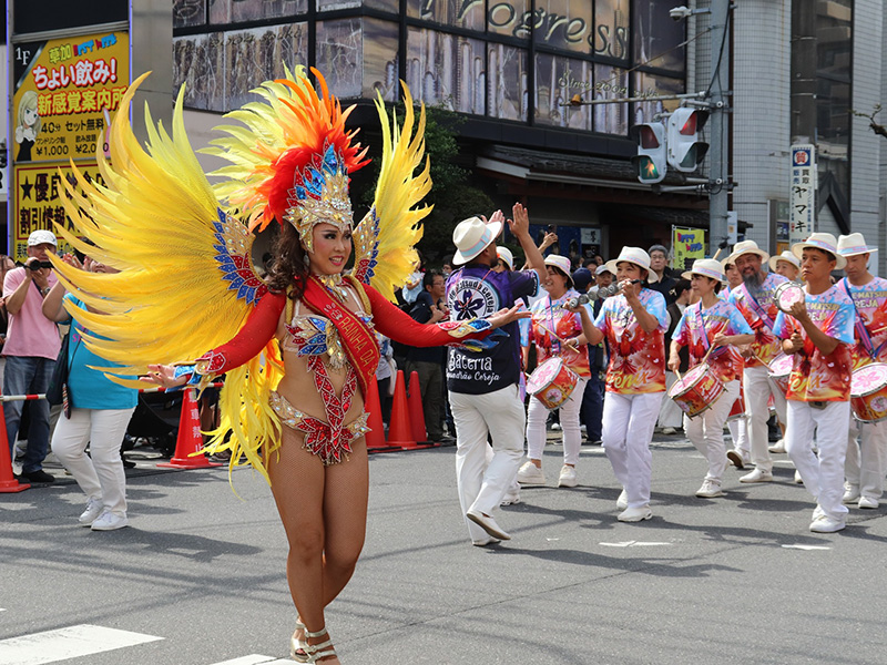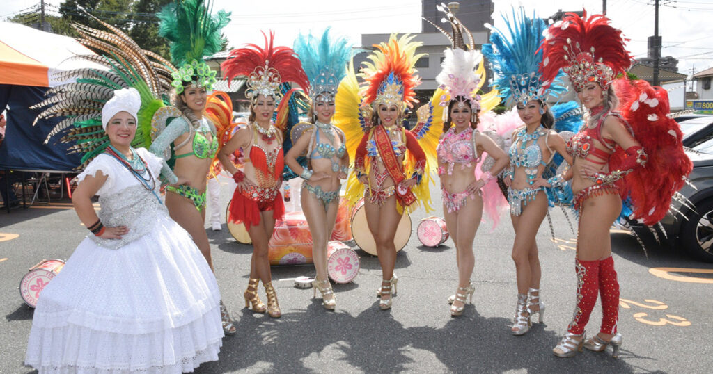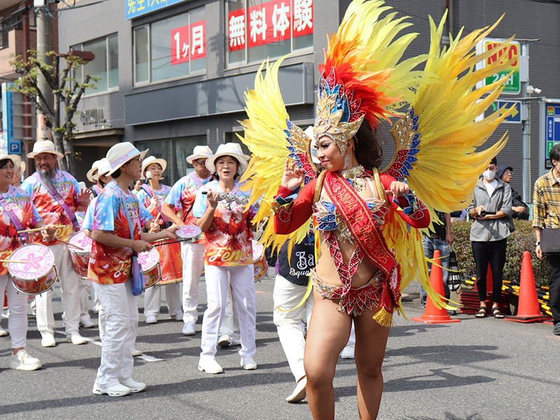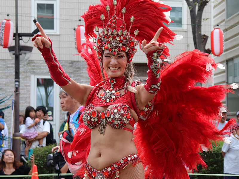日本のよさこい踊りとブラジルのサンバという、「和とラテン」異なる文化のパフォーマンスを組み合わせたお祭りで、よさこい連とサンバチームが入れ替わり立ち替わりパフォーマンスを披露します。