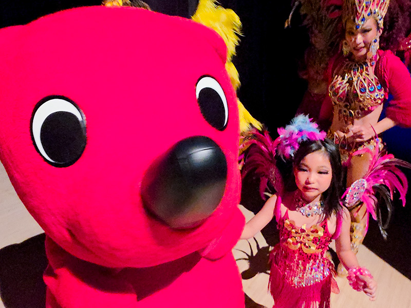 最後の曲「チバケンサンバ」では、千葉県のマスコットキャラクター チーバくん 、ダイナマイト☆なおき様も一緒に踊りました。 チーバくんのかわいらしい動きに会場は大いに盛り上がり、子どもから大人まで笑顔が広がりとても楽しい時間を来場者様と一緒に過ごすことが出来ました。