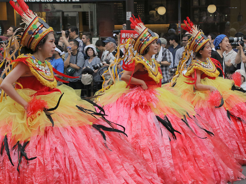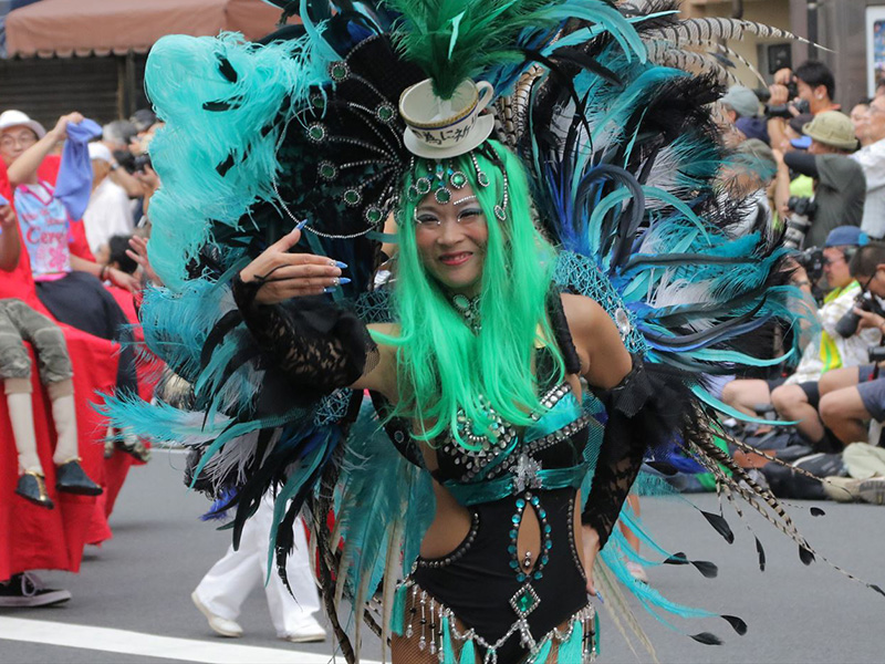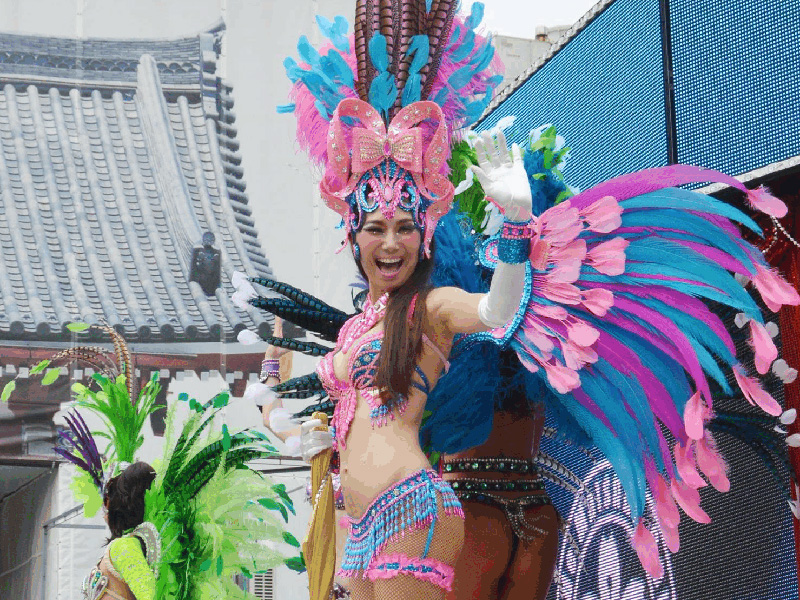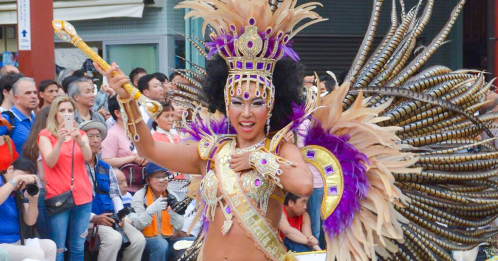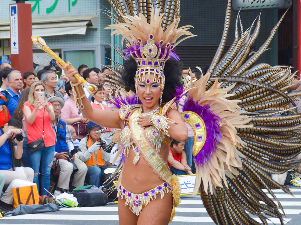 役になりきるために「日焼けサロンにがんがん通った。筋トレもめっちゃした」。パレード後、ダンサーは「一緒に写真を撮ってください」とよく観客にお願いされるそうですが、この年は「日本人はだれも来なかった。たぶんブラジル人だと思われた」そうです。