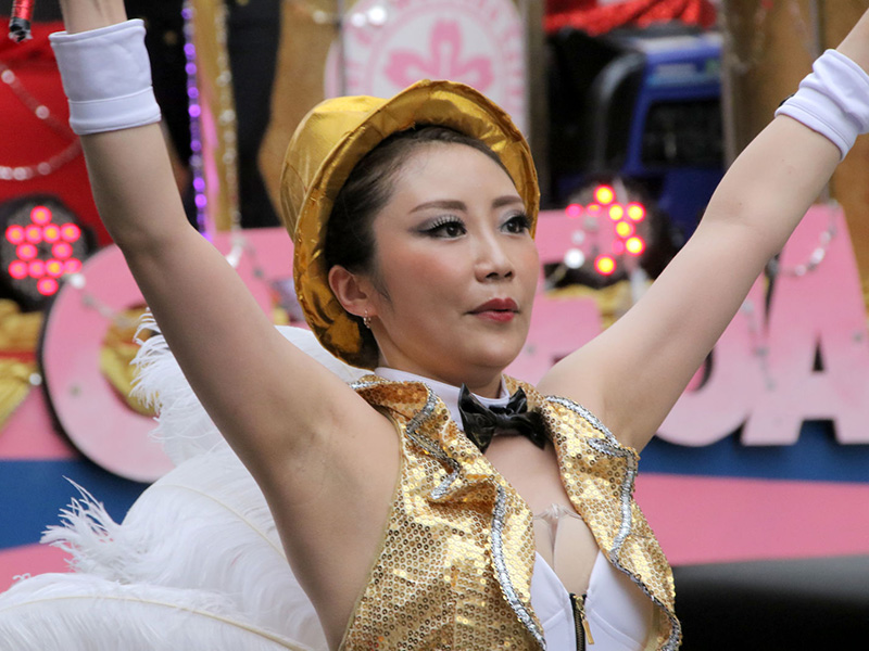 発案者で、カルナバレスカ(総監督)を務めたのはマヨ(※敬称略、以下同じ)。セレージャ創立初期から活躍している女性ダンサーで、チーム屈指のエンターテイナーです。サンバ以外にも、R&B などを歌うなど、幅広いジャンルでステージに立ってきた経験から、「明るく華やかで、見栄えのするテーマがいい」と考え、「Show」を思いついたといいます。曲も、Show のイメージそのままに、明るく快活なメロディー。歌詞は「ひとりひとり輝け ステージに」「客席もステージも みんなが主役」など、楽しい Show をみんなで作り上げるようというメッセージが込められています。明るく華やかで、見栄えのするエンヘードにしたのは、明確な理由と戦略がありました。